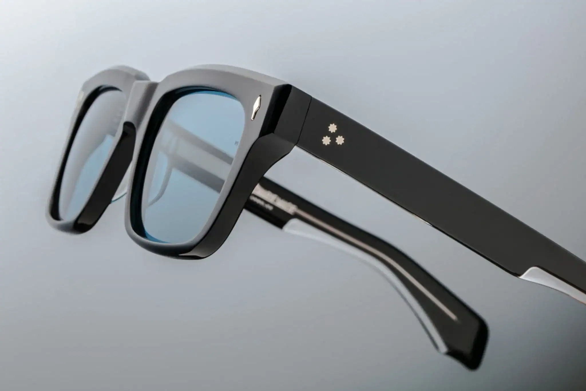 Glasses inspired by the aesthetics of the 1960s are delightful. architectural line, subtle angles and precise finishing. Characteristic of Jacques Marie Mage metal rivets in the shape of arrows, 7-barrel hinges and wire temples with hairline engraving create a cohesive composition of elegance and craftsmanship at the highest level.